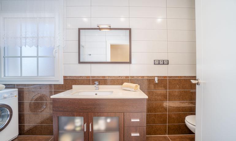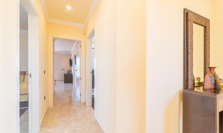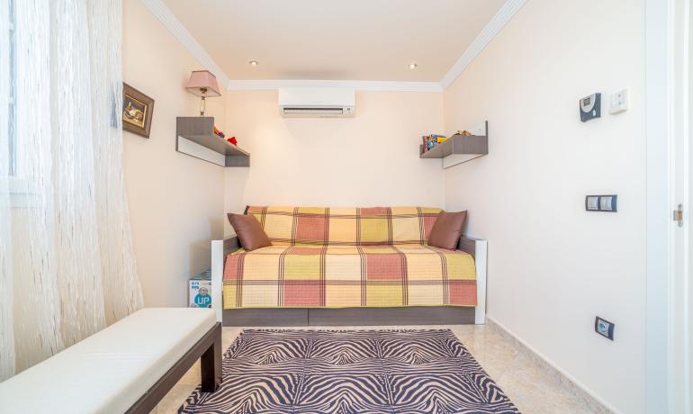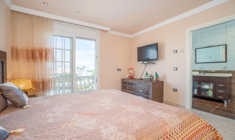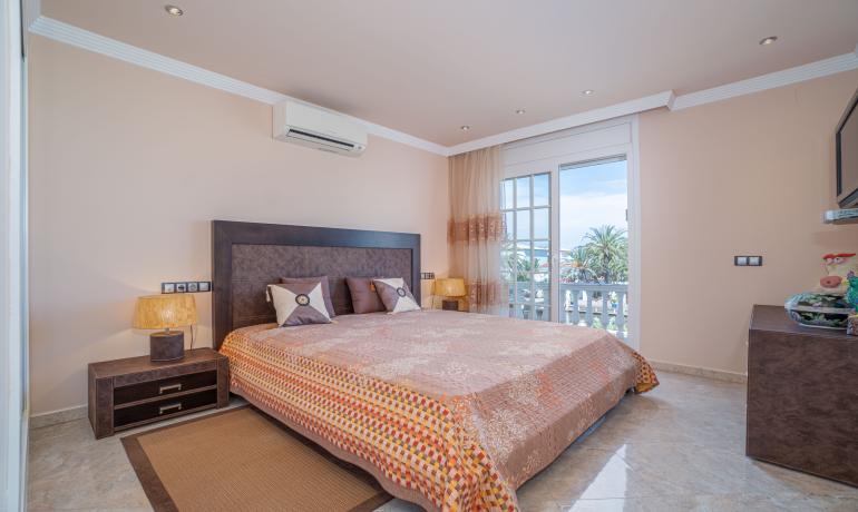 Le premier étage est distribué en trois chambres entièrement meublées, avec de grandes armoires intégrées. La chambre principale possède sa propre salle de bain et une terrasse offrant une vue spectaculaire sur le large canal et les montagnes. Les deux autres chambres, tout aussi confortables et bien conçues, sont séparées et partagent une salle de bain avec douche moderne et finitions de haute qualité.