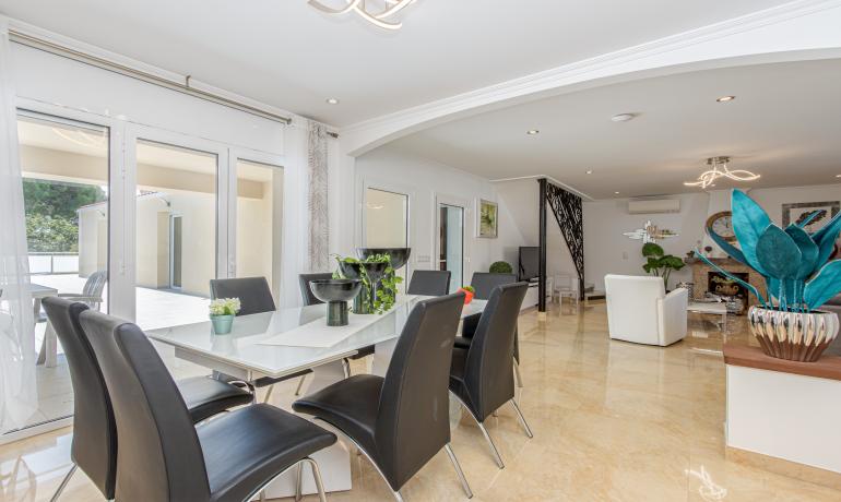 Maison rénové en 2020 sur une parcelle de 1000 m2, 361m2 construit qui se compose en rez de chaussé, d’un grand salon lumineux avec cheminée et accès sur la grande terrasse et piscine , salle à manger, une cuisine séparée , WC et quatre grandes suites.