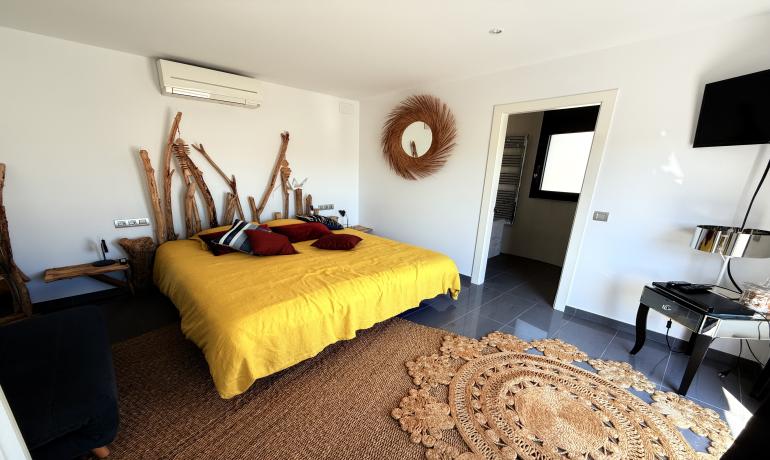 Chambres : 3 suites spacieuses (2 au rez-de-chaussée, 1 à l’étage)