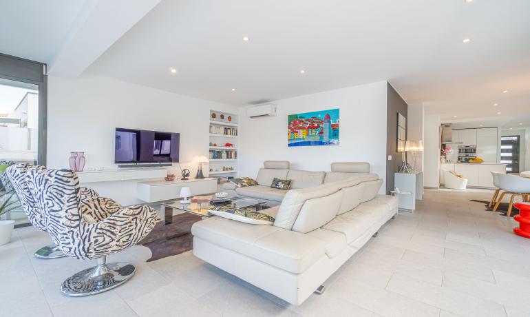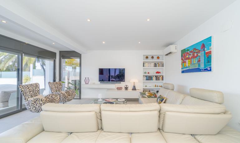 Il s'agit d'une maison en parfait état, avec de nombreux extras et un amarrage généreux, idéale pour ceux qui recherche confort et style. Sa situation permet de se rendre à pied à la plage de la Rubina et au centre-ville.