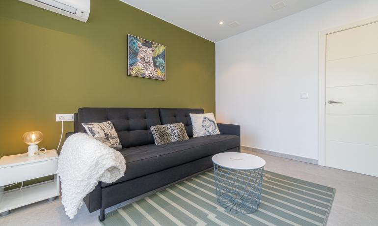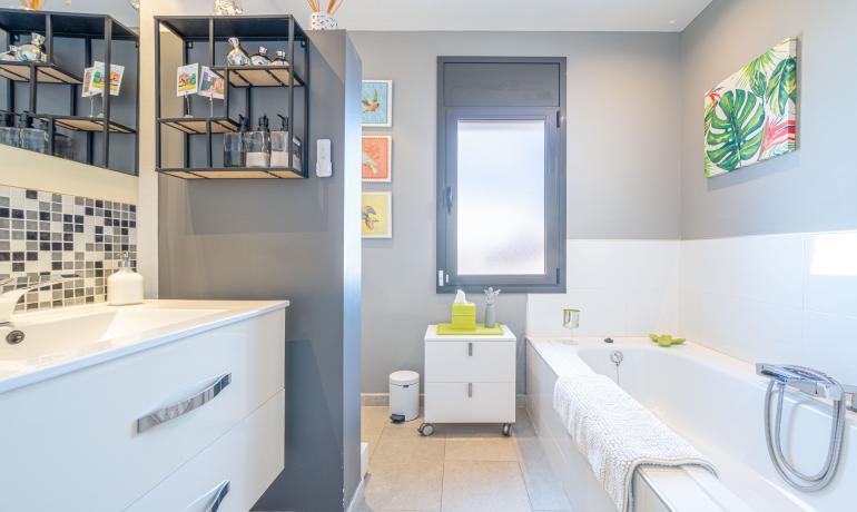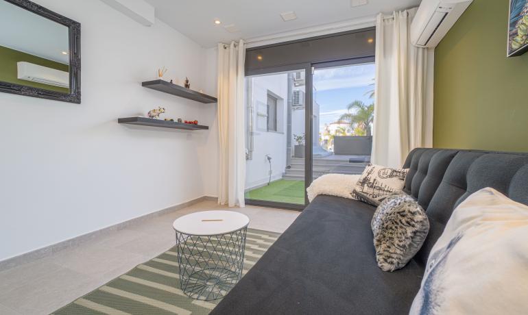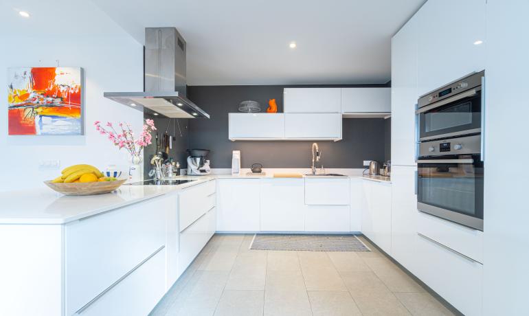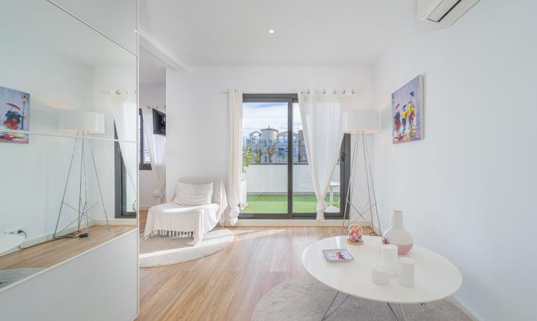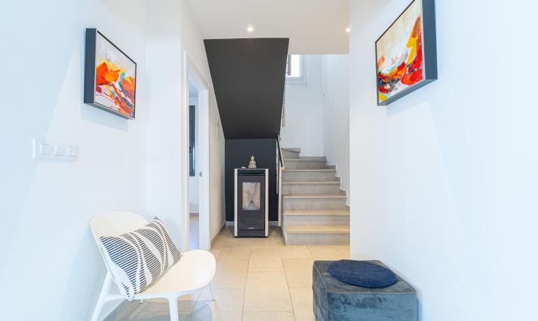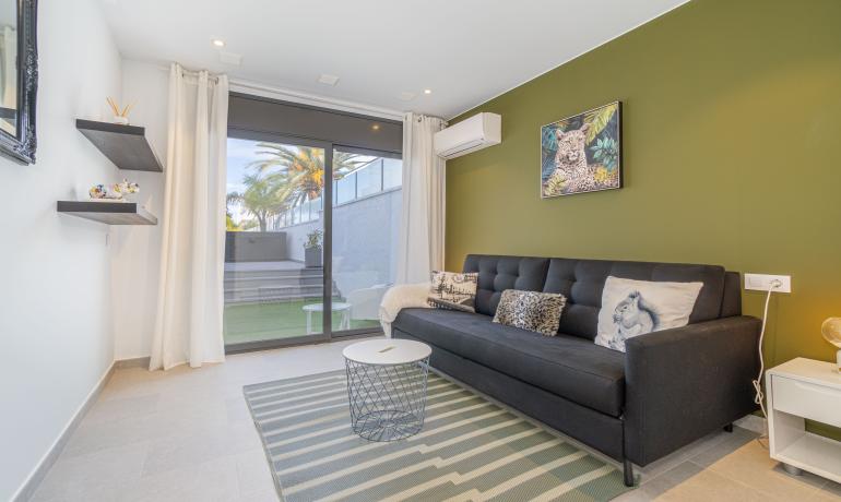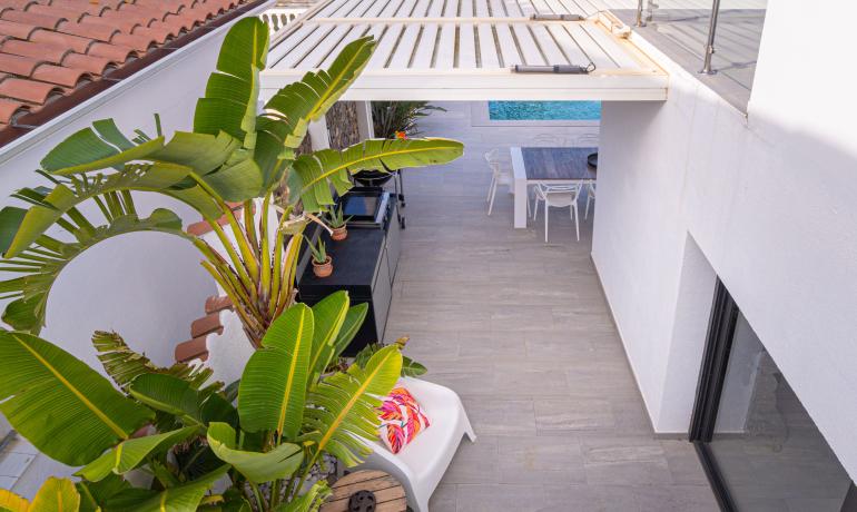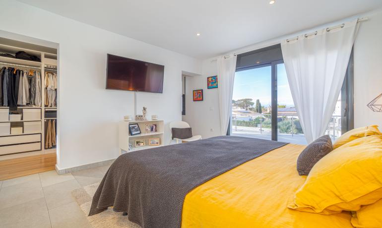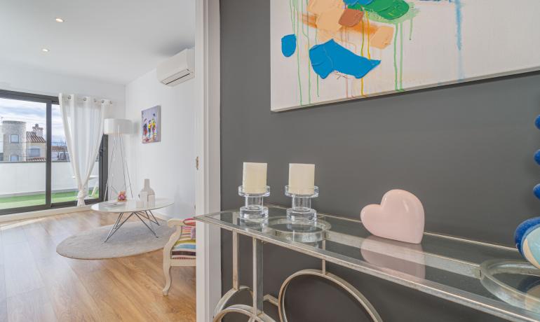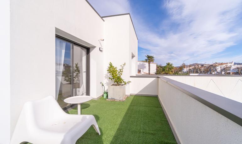 Le rez-de-chaussée se compose d'un hall d'entrée avec armoires encastrées, d'une cuisine ouverte équipée d'électroménager haut de gamme, d'une salle à manger et d'un vaste salon. De là, on accède à une élégante terrasse équipée de mobilier extérieur, d'une pergola bioclimatique avec éclairage, d 'un store électrique doté d'un capteur de vent et de pluie et d'un jacuzzi. La piscine au sel dispose d'un système de chauffage.