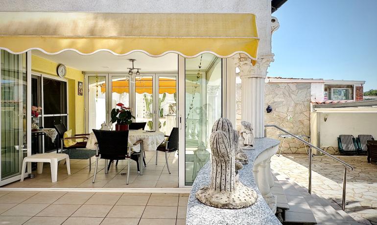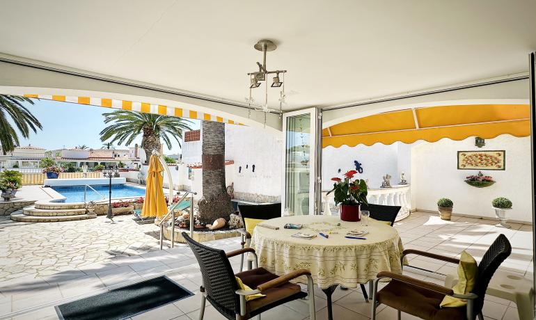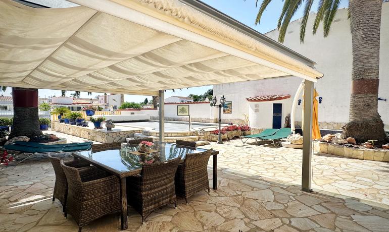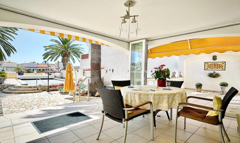 Cette maison est située dans le secteur Llobregat d'Empuriabrava, sur un terrain de 537m2 et a une surface construite de 178m2.