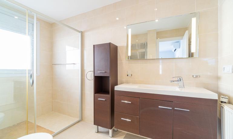 La maison comprend trois chambres, dont une avec salle de bains attenante, et une salle de bains supplémentaire. Chaque pièce a été pensée pour offrir confort et élégance tout au long de l’année.