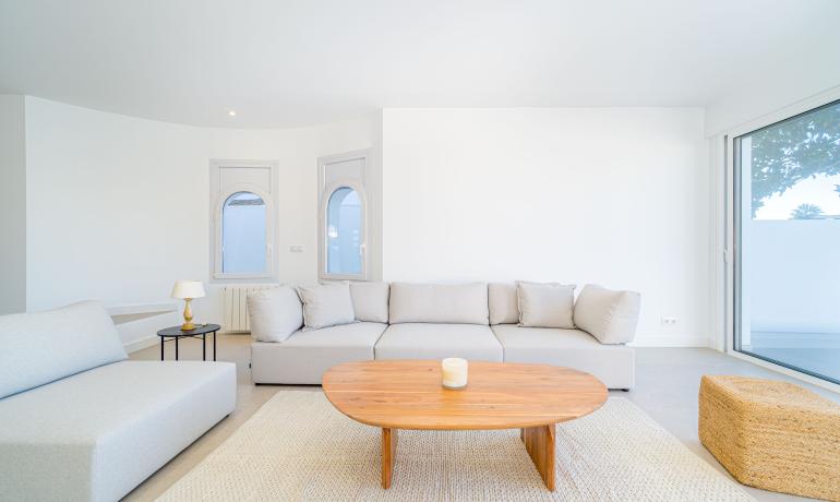 L’intérieur se distingue par des espaces lumineux et ouverts, avec une cuisine américaine entièrement équipée s’ouvrant sur un salon-salle à manger donnant accès à la terrasse principale.
