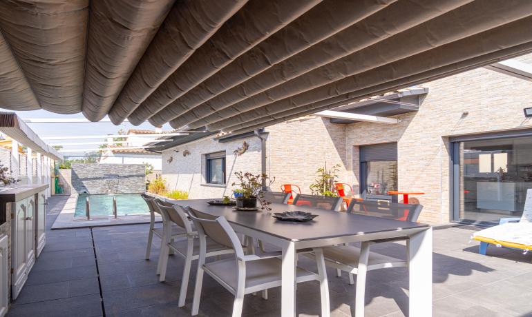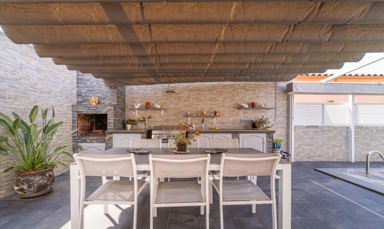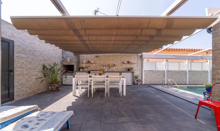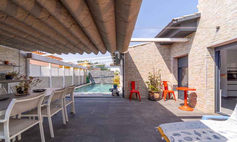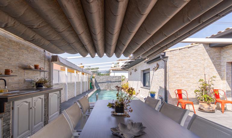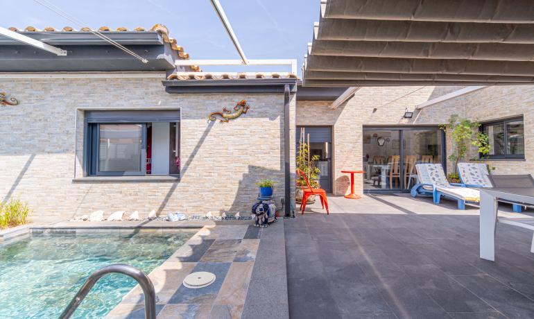 À l’extérieur, le charme opère immédiatement : un patio enchanteur, aménagé avec goût, vous invite à la détente. Vous y découvrirez une véritable cuisine d’été, parfaite pour recevoir et profiter des belles journées. La piscine, élégamment intégrée à l’ensemble, complète ce tableau idyllique.