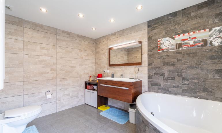 L’espace nuit propose trois belles chambres, dont une suite parentale avec sa salle de bains privative, offrant intimité et confort. Une seconde salle de bains vient compléter cet agencement idéal pour la vie de famille ou l’accueil des invités.