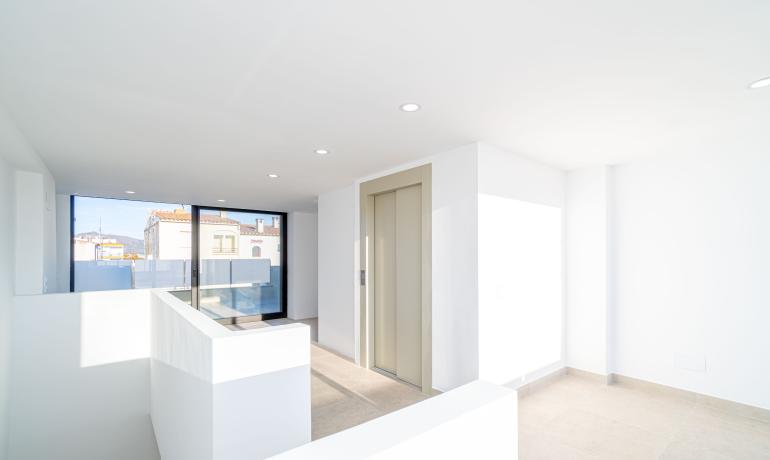 Grâce à son orientation plein sud, la maison bénéficie d’une luminosité naturelle tout au long de la journée. Depuis le deuxième et le troisième étage, on peut admirer une vue latérale sur la mer. Parmi ses prestations : menuiserie en aluminium, sols en céramique, cuisine ouverte et entièrement équipée, chauffage par pompe à chaleur et climatisation réversible. Elle dispose également de préinstallation pour alarme et jacuzzi, éclairage LED, sous-sol et cellier.