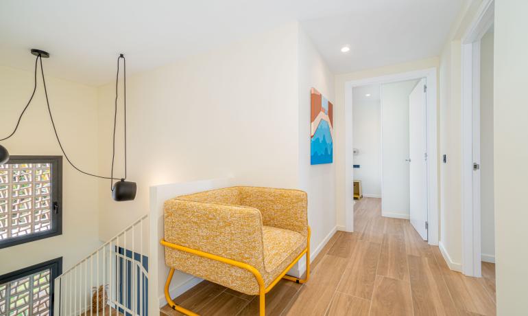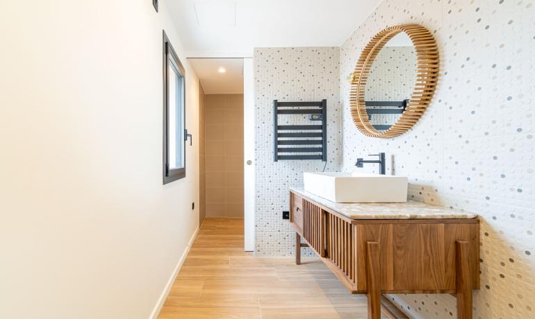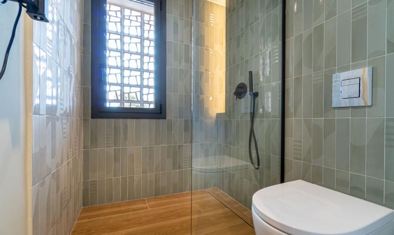 La propriété offre une cuisine ouverte sur le salon-salle à manger, 4 grandes chambres avec leurs 4 salles de bains en suite, dont une chambre au rez-de-chaussée et trois à l’étage.