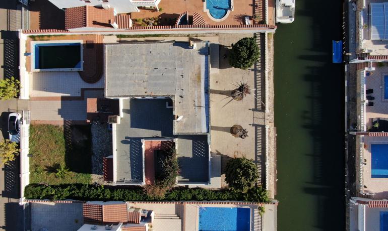 Projet de deux maisons nouvellement construites situées sur le canal étroit à Empuriabrava face au sud.