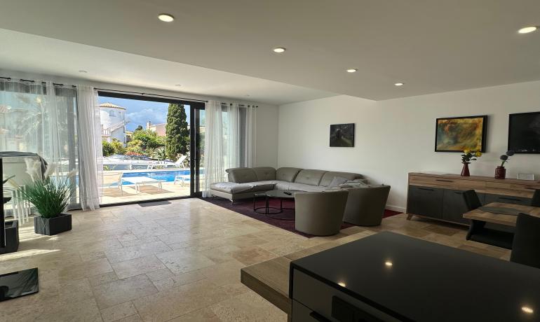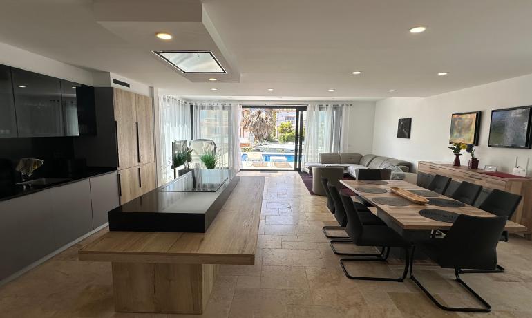 Découvrez cette spectaculaire villa de construction récente située dans l’un des lieux les plus exclusifs de la Costa Brava : Empuriabrava, surnommée la “Venise espagnole” pour son vaste réseau de canaux navigables. Avec un design moderne et élégant, cette propriété offre un équilibre parfait entre confort, style et fonctionnalité.