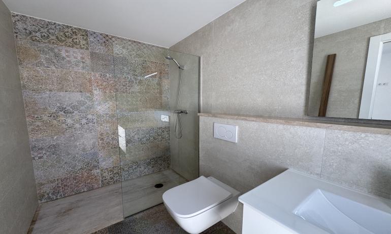 Elle se compose d’un grand salon-salle à manger avec cuisine ouverte, d’un WC invités et d’une chambre en suite au rez-de-chaussée.