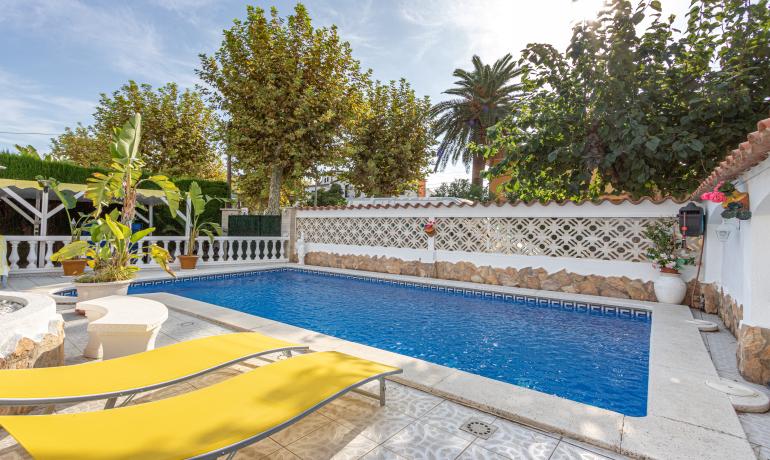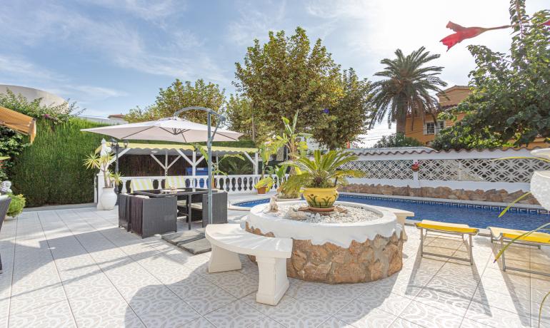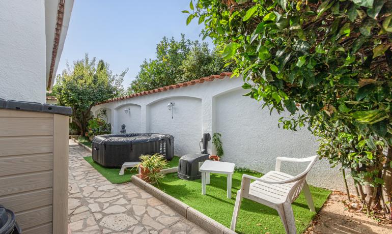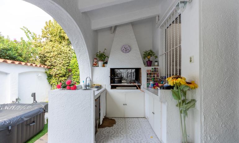 À l'extérieur de la maison, nous avons un magnifique jardin avec des arbres fruitiers, une cuisine extérieure, un jacuzzi et une piscine 8x4.