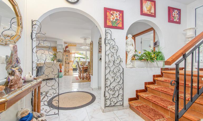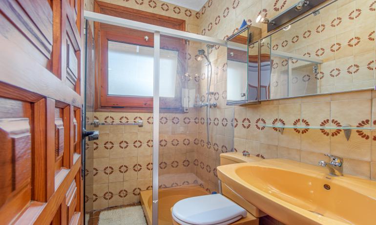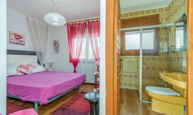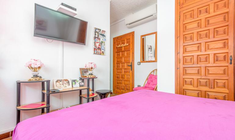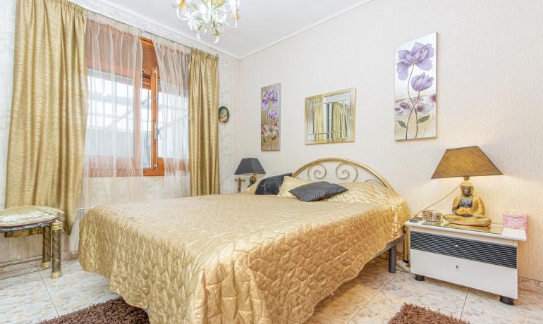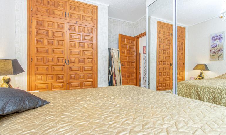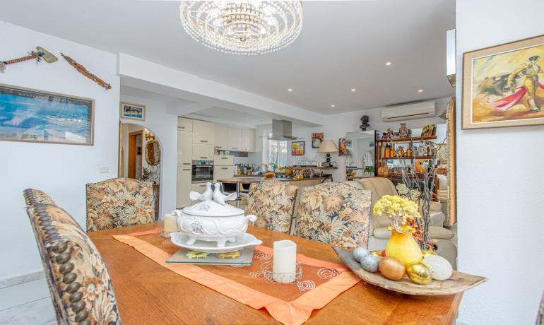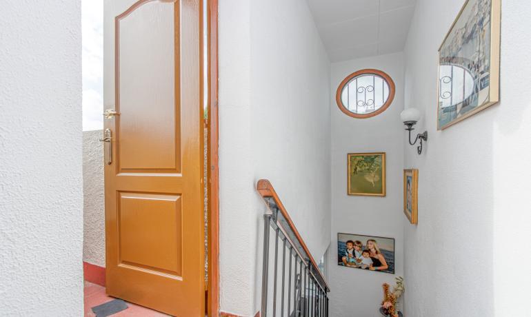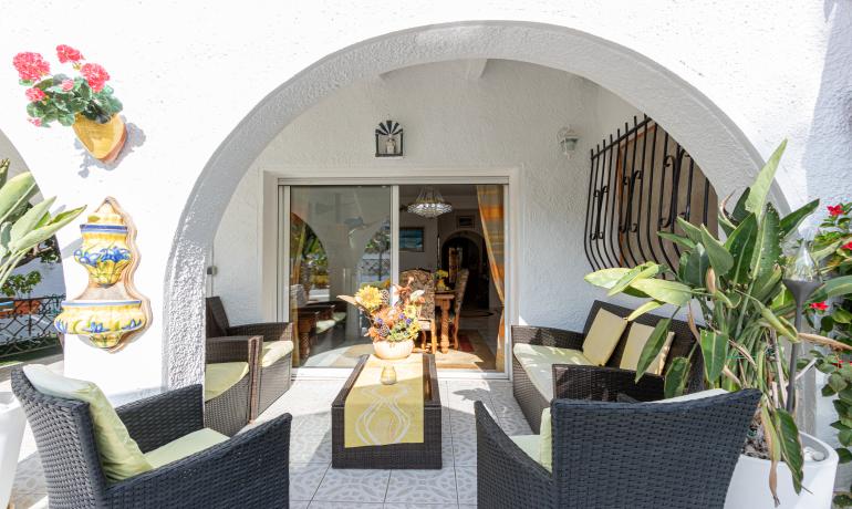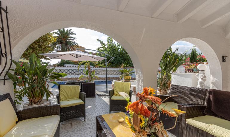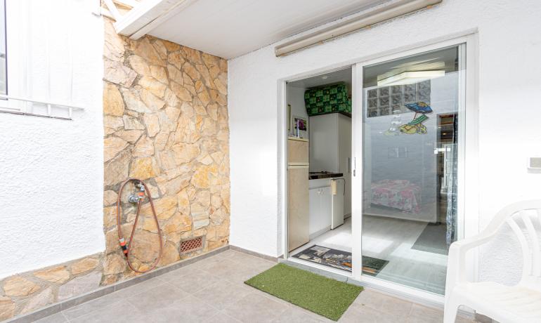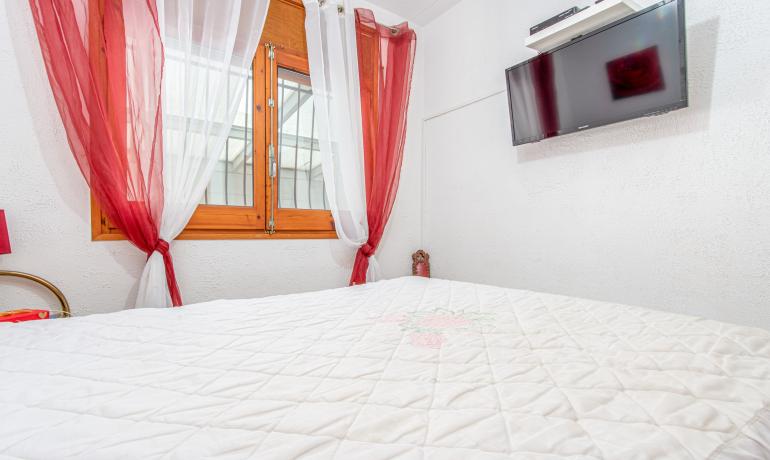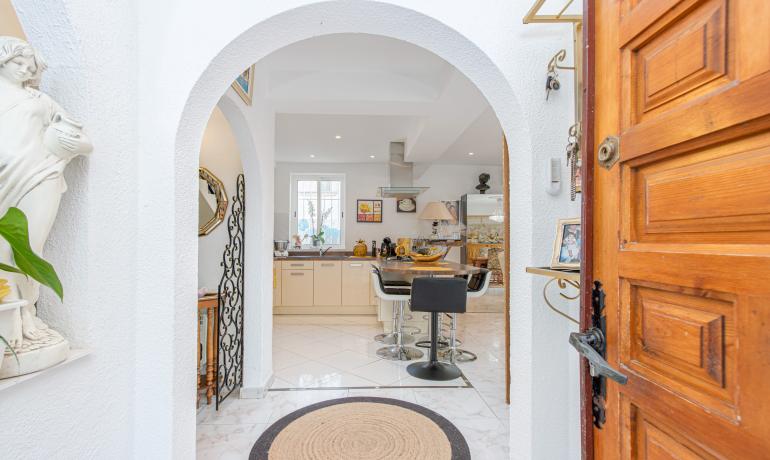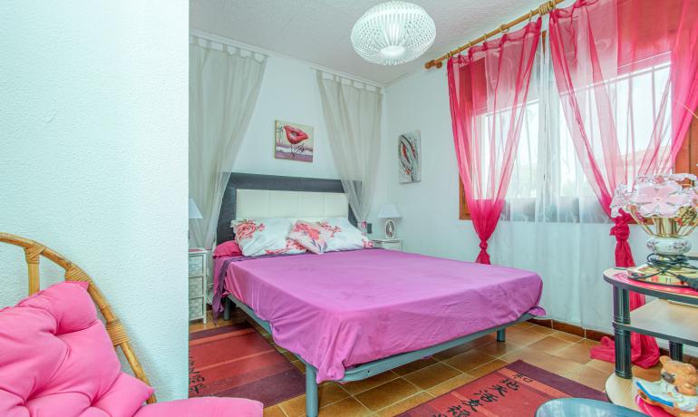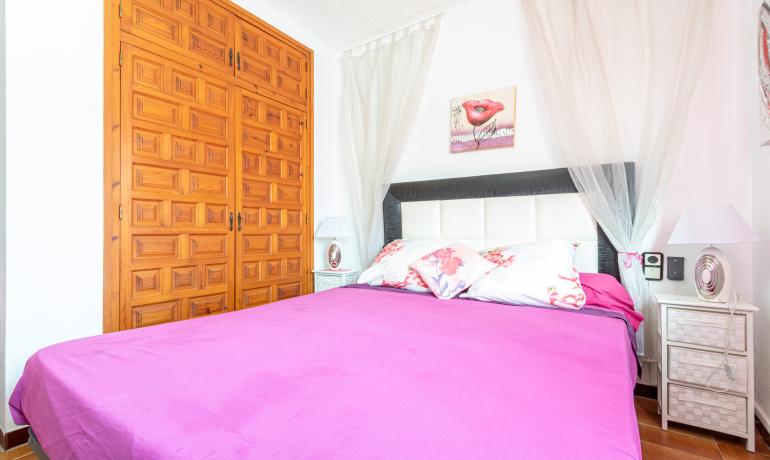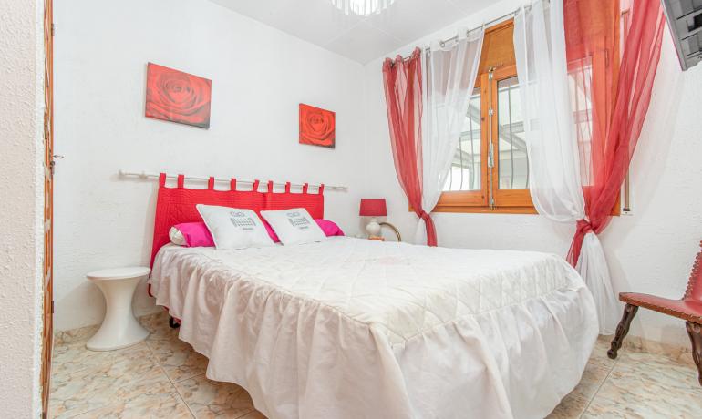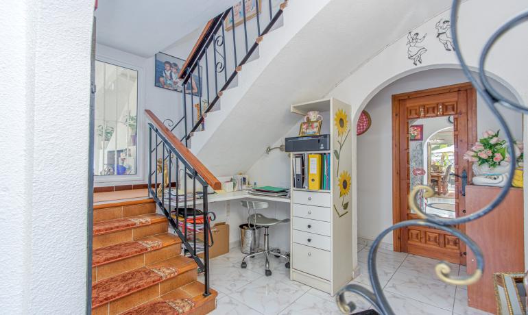 En entrant dans la maison, nous trouvons le hall avec un coin bureau, une cuisine entièrement équipée, le salon avec vue sur la piscine, 2 chambres doubles avec placards et une salle de bain.
