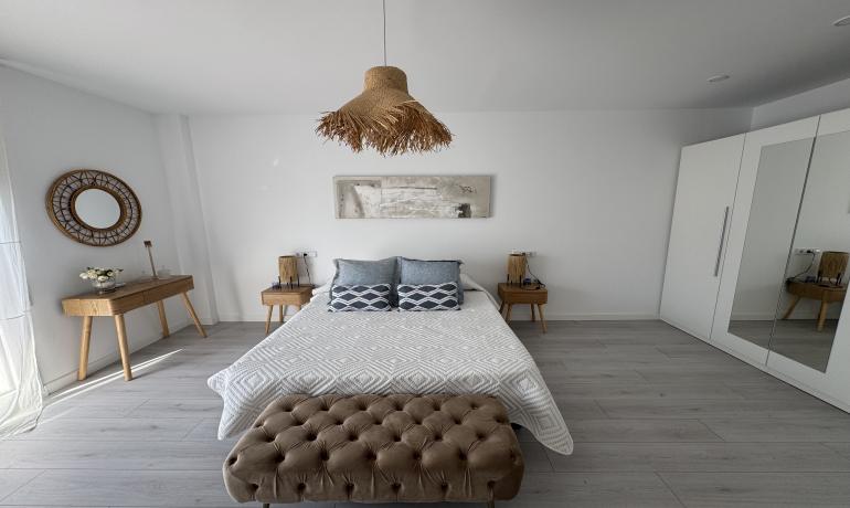 Le premier étage est consacré à la zone de repos, avec deux chambres simples, une salle de bain complète et une suite parentale avec salle de bain privée et terrasse privée, parfaite pour se détendre.
