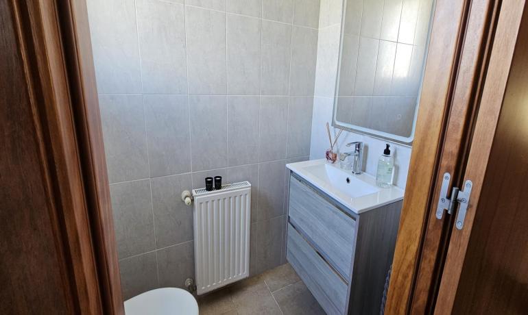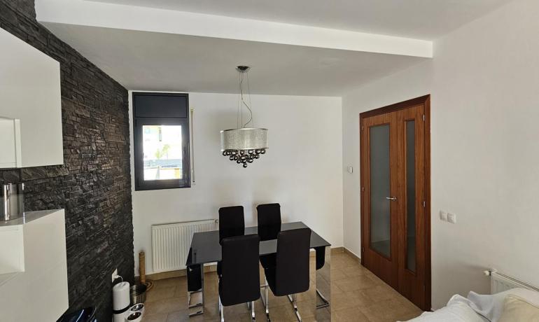 Au rez-de-chaussée, on trouve un hall d'entrée, 1 toilette, 1 chambre double, un grand salon-salle à manger et une cuisine entièrement équipée.